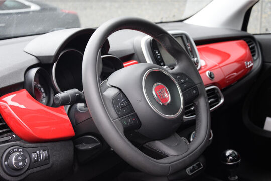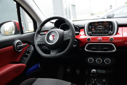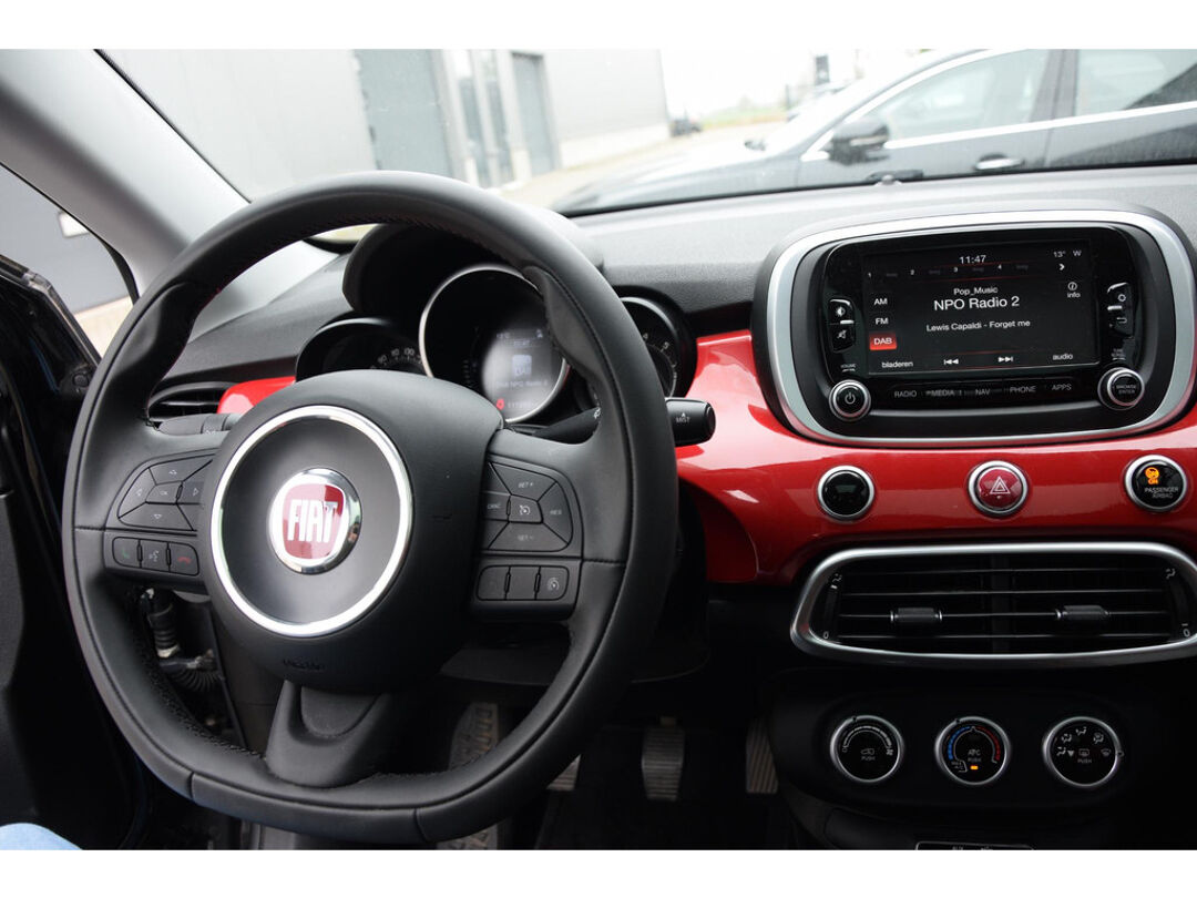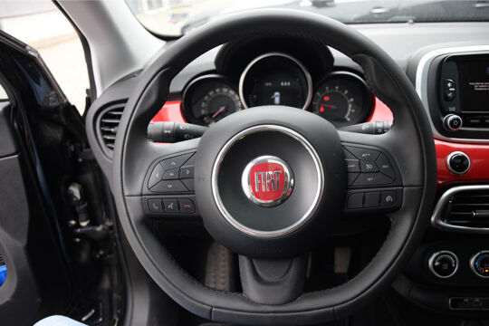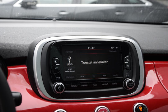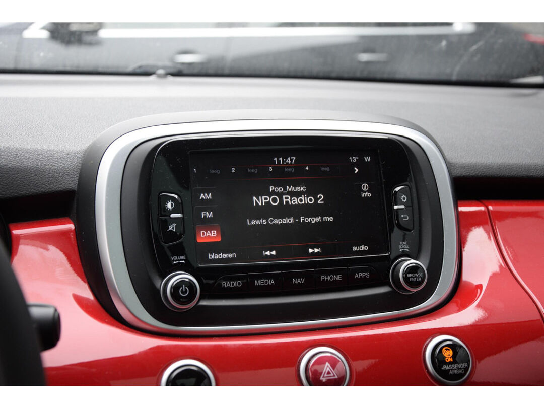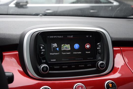 Het audio-installatiesysteem met DAB-ontvangst en het full map navigatiesysteem bedient u veilig met knoppen op het stuur. Natuurlijk is er ook automatische airconditioning aanwezig. Boem is ho? Niet bij deze Fiat 500 X. De piepjes van de parkeersensoren waarschuwen u op tijd voor obstakels. Met deze auto bent u ontspannen onderweg dankzij de cruise control. Met keyless entry kunt u portieren ontgrendelen zonder dat u de sleutel in uw hand houdt. Ook is de Fiat uitgerust met: lederen stuur, centrale deurvergrendeling met afstandsbediening en boordcomputer.