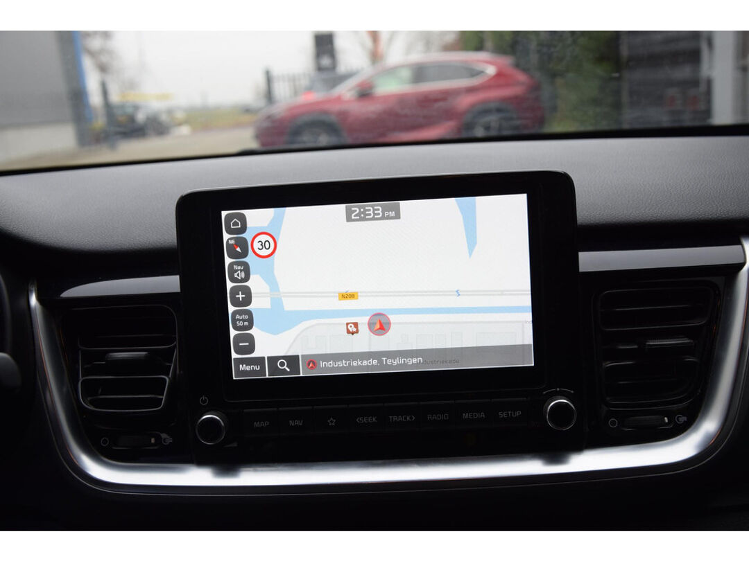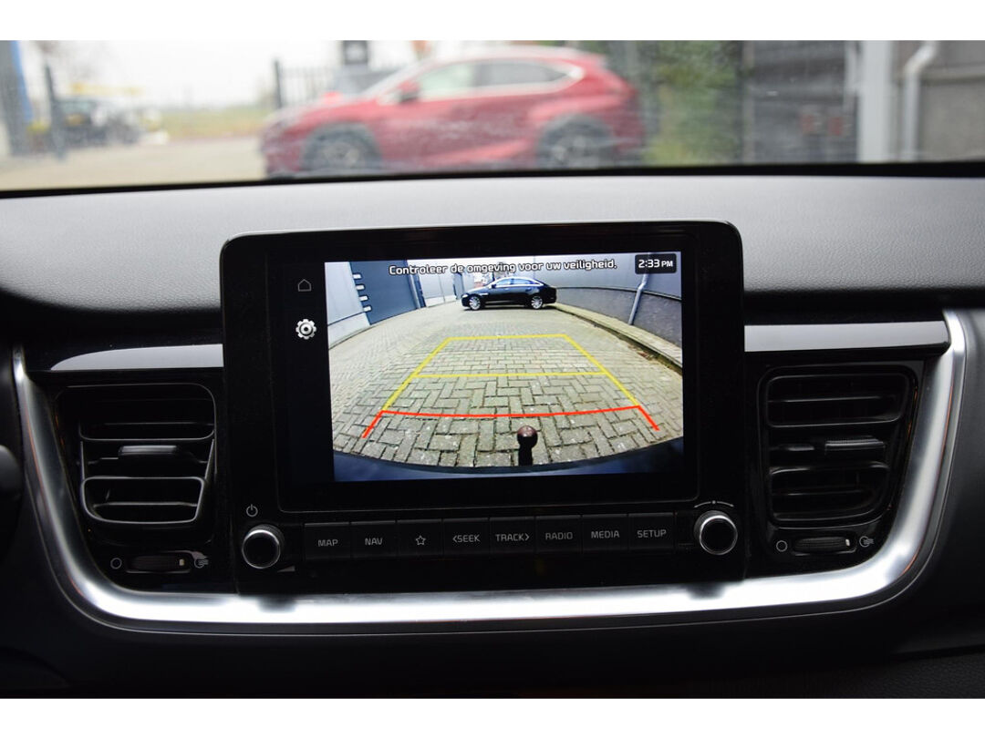 De indeling van het digitale dashboard is zo ingericht dat u met één blik precies weet wat u weten wilt. Met de achteruitrijcamera ziet u precies wat er achter de auto gebeurt. Deze Kia is voorzien van knoppen op het stuur om het full map navigatiesysteem en het audiosysteem met DAB-ontvangst te bedienen. Natuurlijk is er ook electronic climate control aanwezig. Om de veiligheid onderweg te verhogen, heeft deze Kia zowel een automatisch inschakelbare verlichting als een regensensor aan boord, zodat hij zelf de verlichting en de ruitenwissers kan inschakelen. Ook is de Kia uitgerust met: keyless entry, automatisch dimmende binnenspiegel en lederen stuur en versnellingspook.