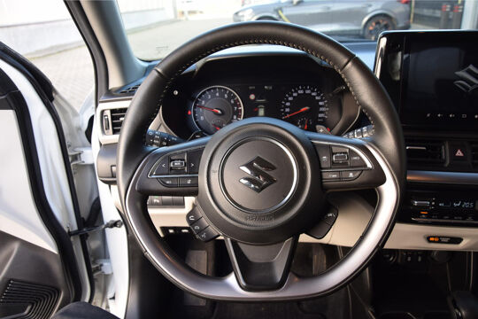 Geavanceerde systemen kunnen tijdens de rit bepaalde taken van u overnemen. Zo kijken er als het ware steeds extra ogen met u mee, zodat u tijdig kunt reageren op noodsituaties. Bij de veiligheidssystemen van deze Suzuki hoort ook de verkeersbord-detectie. Die leest tijdens het rijden als het ware met u mee en attendeert u op de significante verkeersborden langs en boven de weg. Onbedoeld buiten de rijstrook raken wordt voorkomen door het Lane-keeping systeem. Met de vermoeidheidsassistent bent u ook op lange ritten veilig op pad. Het systeem geeft een waarschuwing zodra het tijd is voor een pauze. Dankzij veiligheidsvoorzieningen als dodehoekdetectie, hill hold functie, autonoom remsysteem en bandenspanningcontrolesysteem, bent u steeds veilig onderweg.