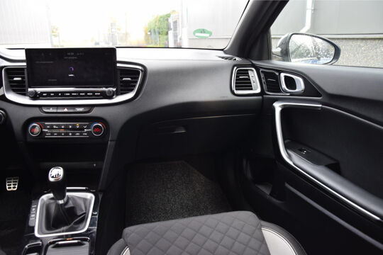 Twijfelen hoeveel ruimte u achter de auto heeft? Met de achteruitrijcamera weet u altijd hoeveel centimeter! Als u regelmatig met een aanhanger of een fietsendrager op pad bent, is de afneembare trekhaak een praktische extra. Als u 'm vraagt 'hoe gaat het?' geeft deze auto zelf het antwoord. Via de app op uw smartphone. U checkt de meters waar u maar wilt, of activeert diverse functies alvast. In deze Ceed vindt u niet alleen schakelaars op het stuur om het full map navigatiesysteem te bedienen en het audiosysteem met DAB-ontvangst, maar er is ook spraakbediening. Tot de standaard uitrusting van deze auto hoort ook electronic climate control. En dan is deze auto ook nog eens voorzien van regensensor, cruise control, sportstuurwiel, automatisch dimmende binnenspiegel, centrale deurvergrendeling met afstandsbediening en lederen versnellingspook.