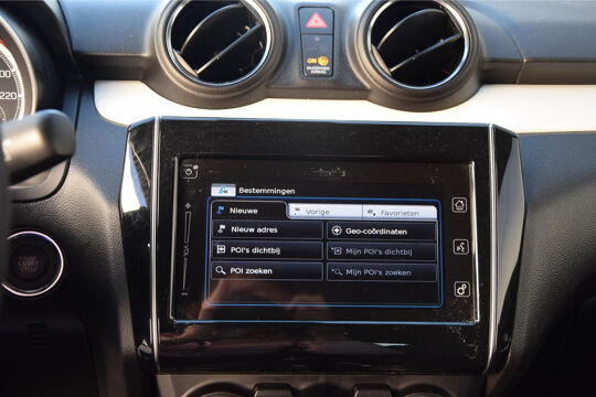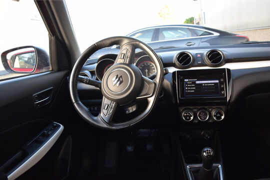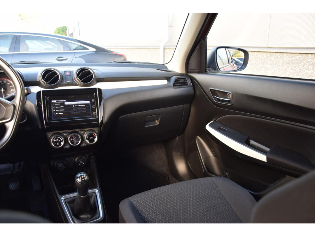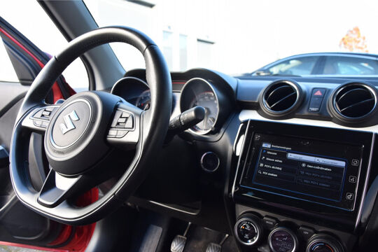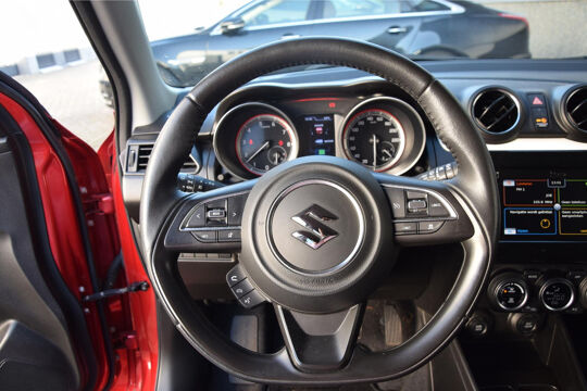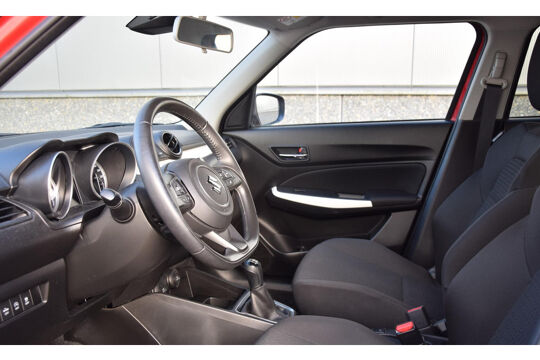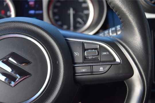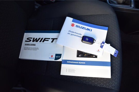 Zoals u mag verwachten van deze Suzuki Swift is hij uitgerust met een reeks aan actieve veiligheidssystemen. Een camera houdt de juiste koers binnen de rijstrook in de gaten en het Lane-keeping systeem corrigeert bij afwijkingen. Een belangrijke bijdrage aan de veiligheid in deze auto is de vermoeidheidsherkenning, die waarneemt wanneer de bestuurder tekenen van vermoeidheid vertoont. Deze Suzuki Swift is voorzien van Brake Assist, die extra remkracht geeft bij een noodstop. De auto is ook uitgerust met hill hold functie en bandenspanningcontrolesysteem.