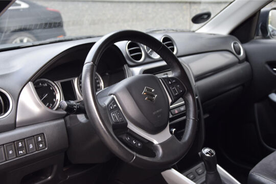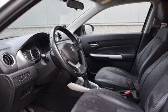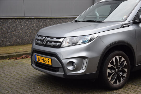 Dankzij hoogwaardige techniek en verschillende veiligheidssystemen, biedt deze Suzuki Vitara u optimale veiligheid en comfort tijdens iedere rit. In deze auto vindt u een benzinemotor en een handgeschakelde vijfversnellingsbak. De leren bekleding straalt klasse en goede smaak uit. Tijdens gure dagen is het prettig zitten in de verwarmbare voorstoelen. U wordt in deze auto ook getrakteerd op 17 inch lichtmetalen velgen, LED koplampen, extra getint glas en in delen neerklapbare achterbank.