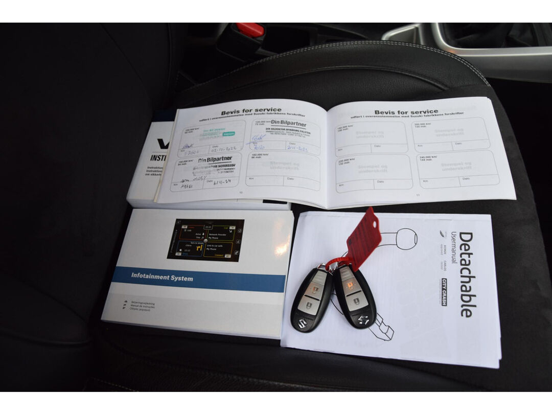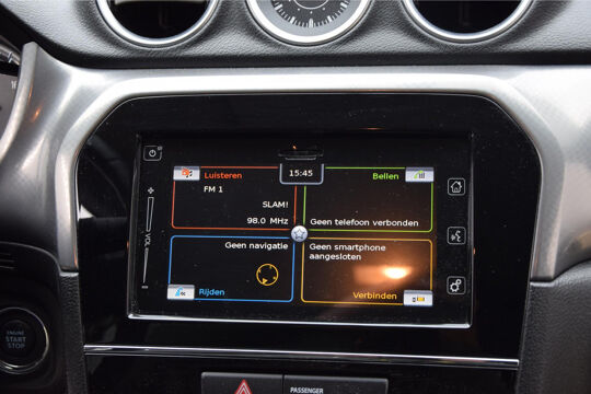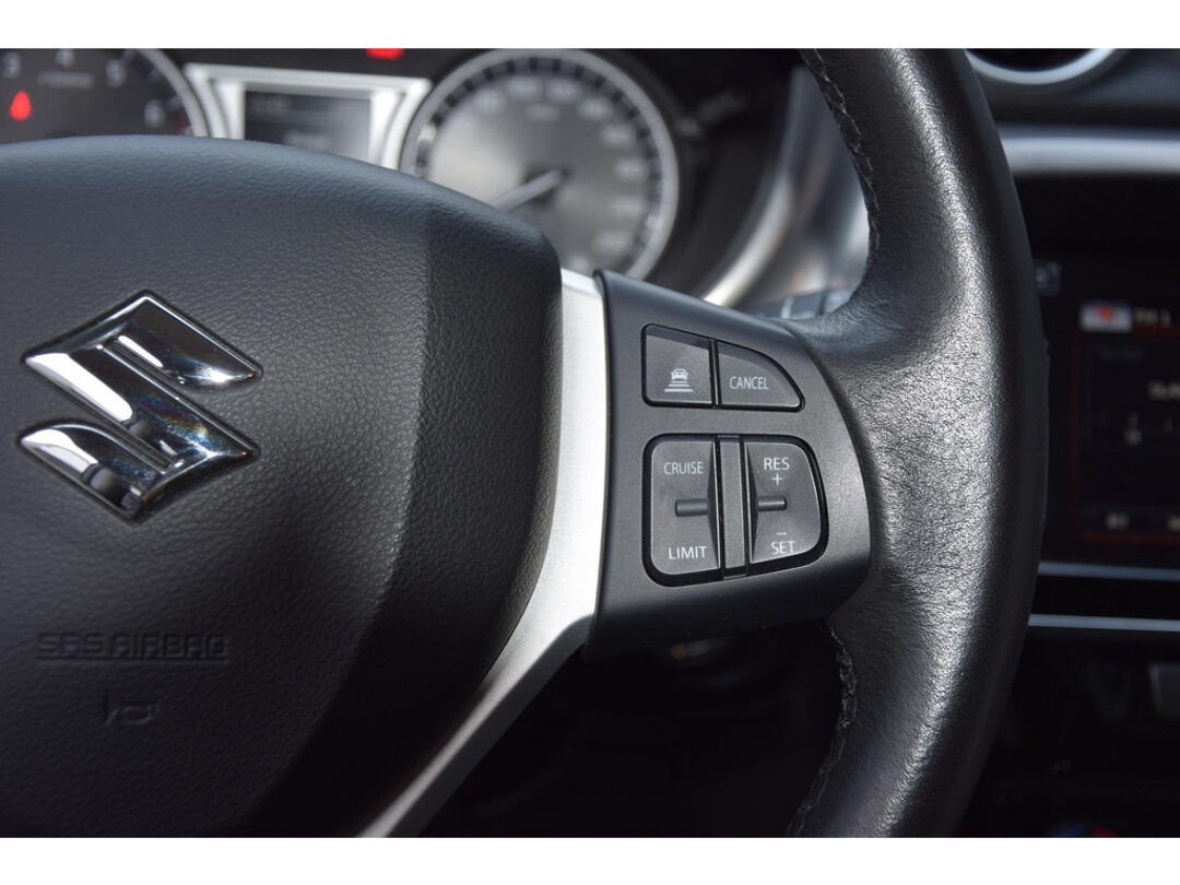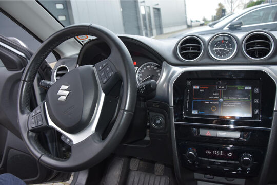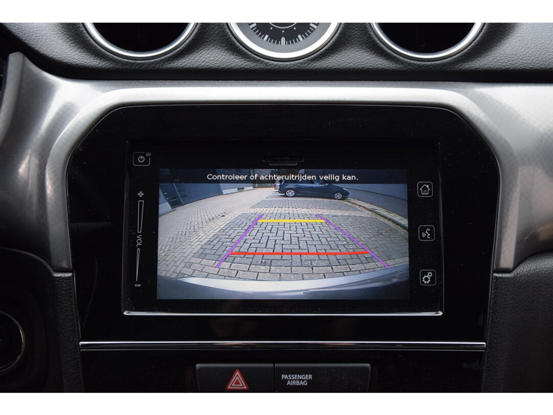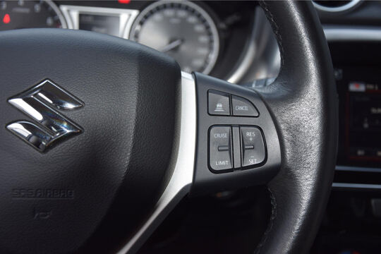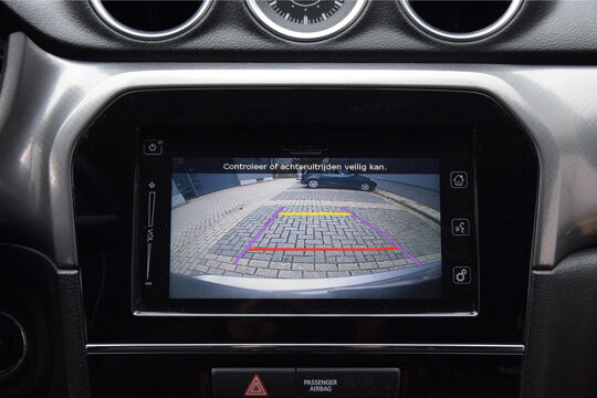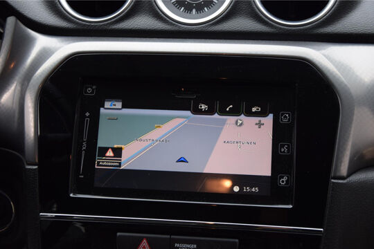 De achteruitrijcamera laat duidelijk zien hoeveel ruimte u nog heeft bij het inparkeren. Adaptive cruise control houdt de ingestelde snelheid vast en houdt automatisch afstand tot uw voorligger. Een belangrijke veiligheidsvoorziening is de bediening van het audio-installatiesysteem en het full map navigatiesysteem via knoppen op het stuur. De automatische airconditioning zorgt voor een behaaglijk klimaat in de auto. De elektronische systemen in deze Suzuki helpen u actief om comfortabeler te rijden. Een automatisch inschakelbare verlichting en een regensensor houden de omstandigheden onderweg in de gaten. De uitrusting van deze Suzuki is met centrale portiervergrendeling, boordcomputer en verstelbaar stuur behoorlijk compleet.