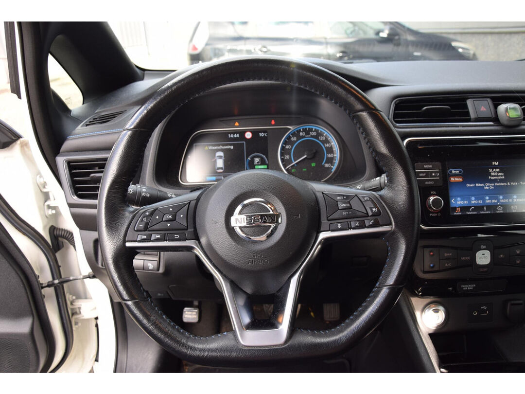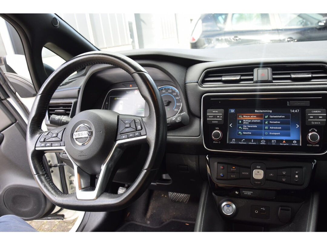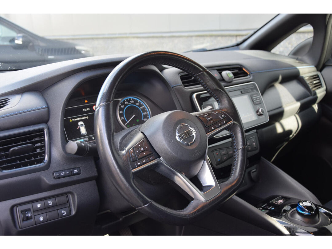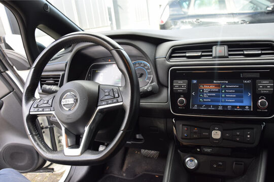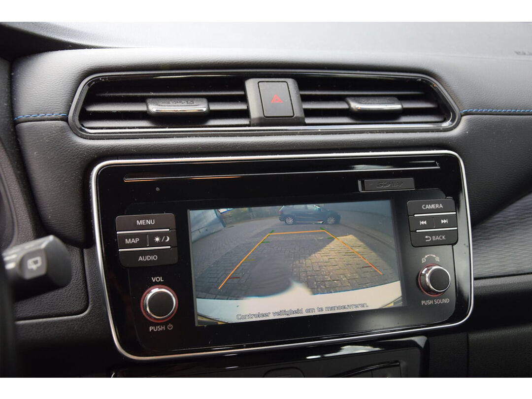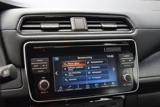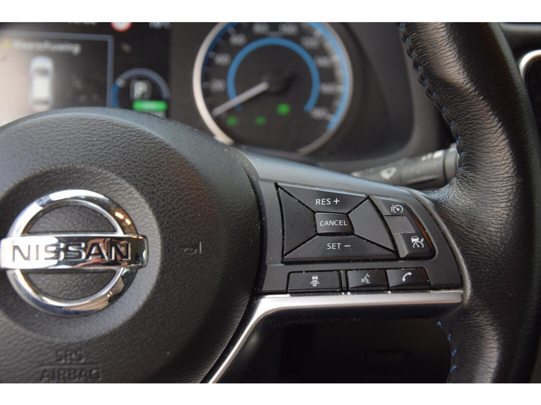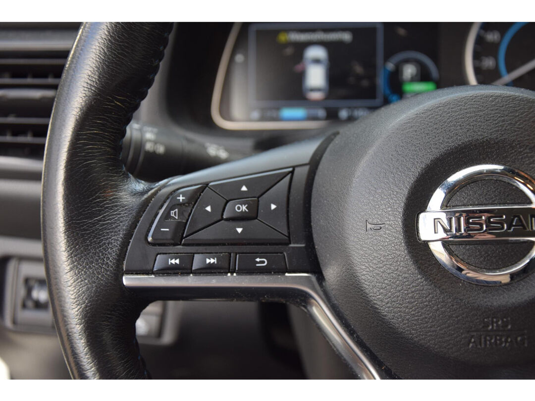 Zoals u mag verwachten van deze Nissan LEAF is hij uitgerust met een reeks aan actieve veiligheidssystemen. Onderweg fungeert de verkeersbord-detectie als het ware als uw bijrijder en attendeert u op de verkeersborden langs de weg. Een camera houdt de juiste koers binnen de rijstrook in de gaten en het Lane-keeping systeem corrigeert bij afwijkingen. Het risico van een kop-staartbotsing wordt aanzienlijk verminderd door de forward collision warning. U bent mede dankzij dodehoekdetectie, hill hold functie, autonoom remsysteem en bandenspanningcontrolesysteem steeds veilig onderweg.