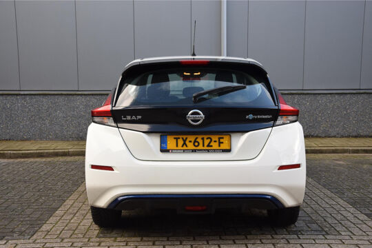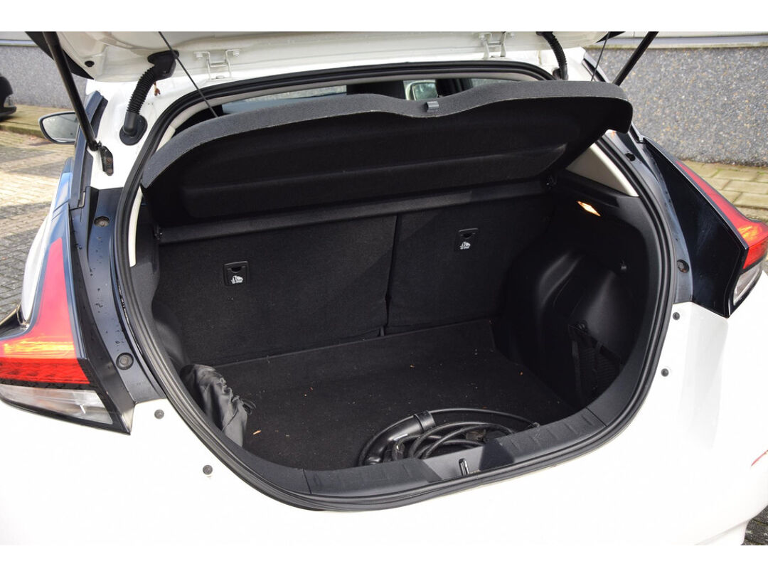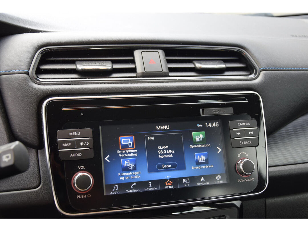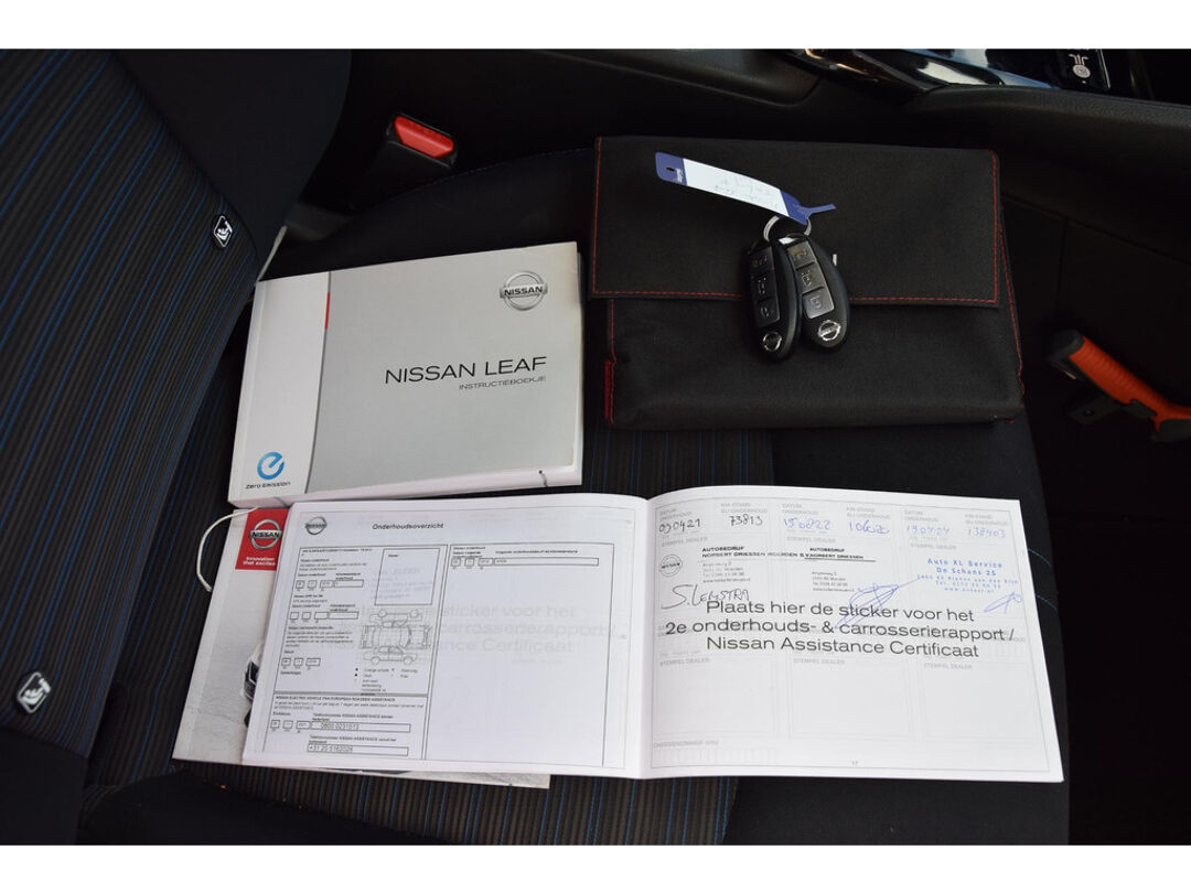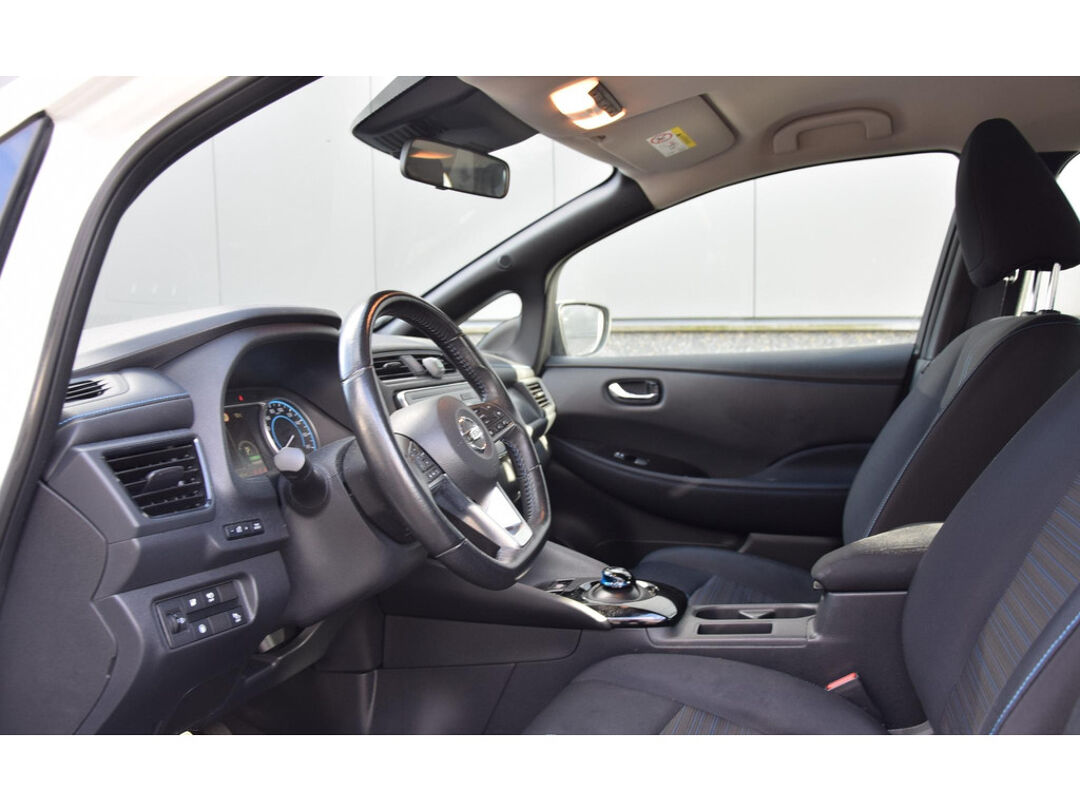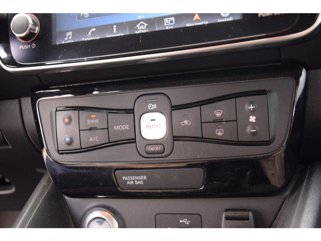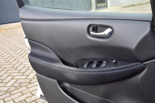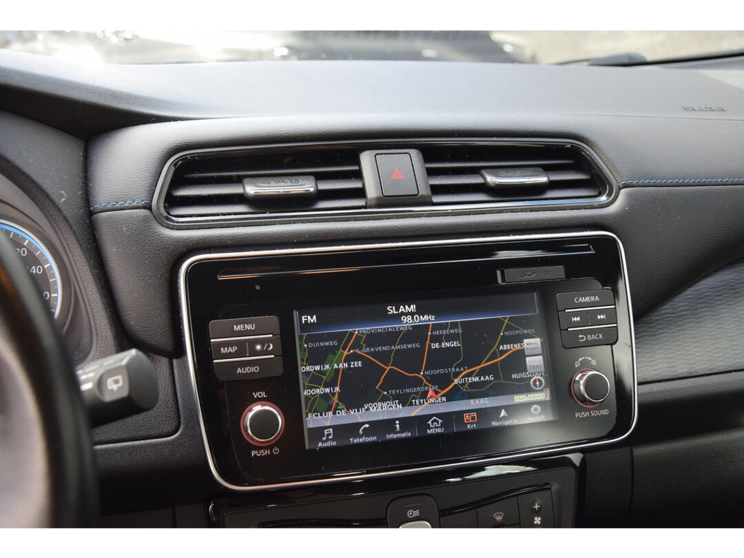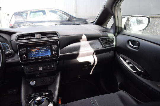 Zoals u mag verwachten van deze Nissan LEAF is hij uitgerust met een reeks aan actieve veiligheidssystemen. Onderweg fungeert de verkeersbord-detectie als het ware als uw bijrijder en attendeert u op de verkeersborden langs de weg. Een camera houdt de juiste koers binnen de rijstrook in de gaten en het Lane-keeping systeem corrigeert bij afwijkingen. Het risico van een kop-staartbotsing wordt aanzienlijk verminderd door de forward collision warning. U bent mede dankzij dodehoekdetectie, hill hold functie, autonoom remsysteem en bandenspanningcontrolesysteem steeds veilig onderweg.