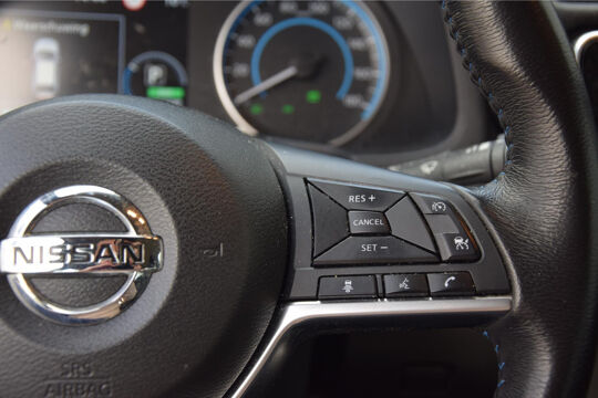 Ook achter de auto geen verrassingen bij het inparkeren. Daarvoor zorgt de achteruitrijcamera. Met adaptive cruise control houdt deze auto automatisch afstand tot uw voorligger. Een optie die de veiligheid verhoogt, is de bediening vanaf het stuur van het audio-installatiesysteem (met DAB-radio!) en het full map navigatiesysteem. Met de automatische airconditioning selecteert u de gewenste temperatuur. Het systeem doet de rest. In deze Nissan kunt u zich concentreren op het verkeer, terwijl de auto de omgeving voor u in de gaten houdt. Een automatisch inschakelbare verlichting zorgt dat de verlichting aangaat als het donkerder wordt - in tunnels bijvoorbeeld - en de regensensor schakelt de ruitenwissers in als het nodig is. U hoeft er niets aan te doen. Deze Nissan is voorzien van keyless entry, lederen stuur en boordcomputer.