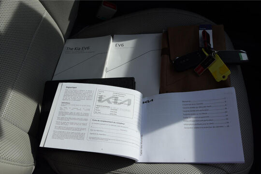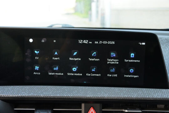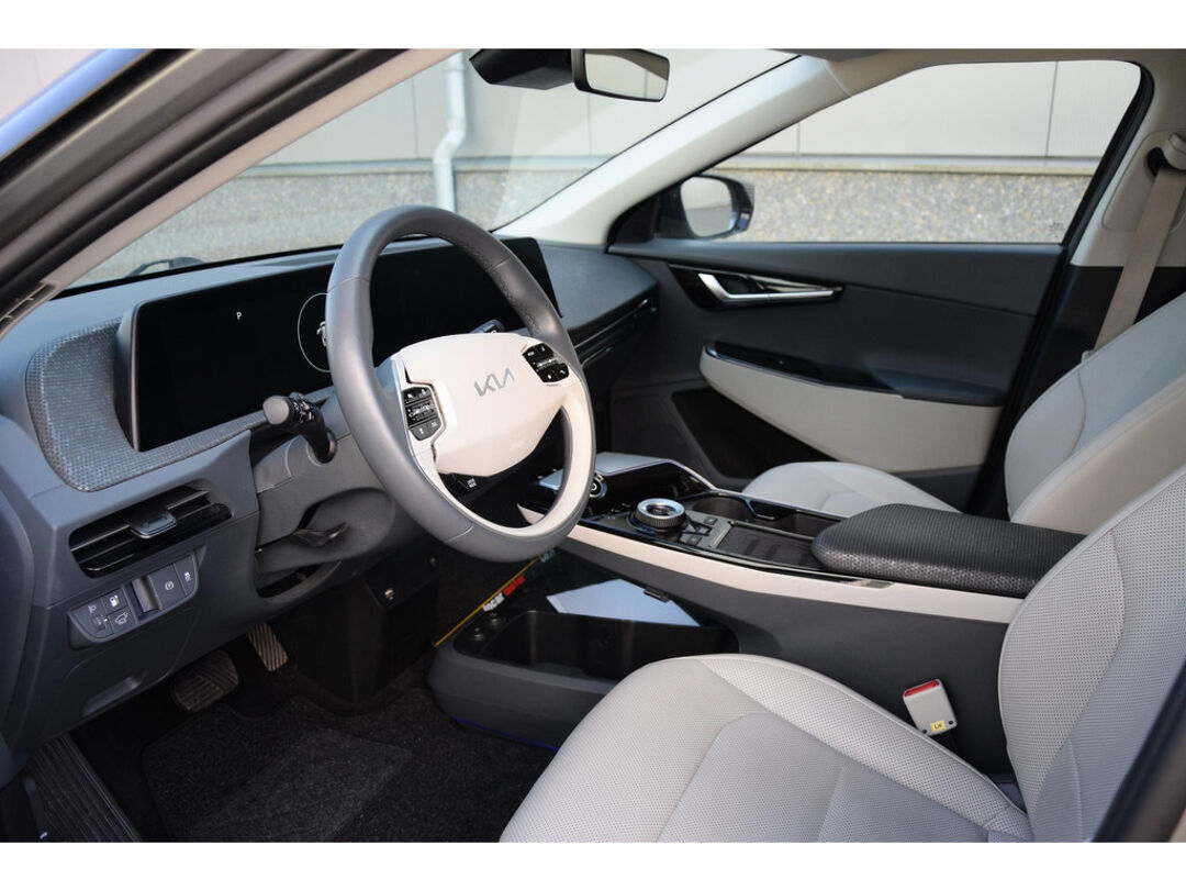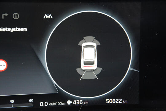 Met het digitale dashboard in deze auto kunt u de interface van uw cockpit personaliseren. Twijfelen hoeveel ruimte u achter de auto heeft? Met de achteruitrijcamera weet u altijd hoeveel centimeter! Met adaptive cruise control houdt de auto zelfstandig afstand tot uw voorligger. Een veiligheidsverhogende optie waarmee u comfortabel onderweg bent. Rijden-stilstaan, rijden-stilstaan. Niks is irritanter en vermoeiender dan filerijden. Daar heeft deze Kia EV6 een oplossing voor: de file assistent, die met radarmeting permanent het tempo aanpast op de voorligger. Zelfs als die stopt. Vanaf elke plek contact maken met deze auto: dat kan met behulp van remote services, die u simpel activeert met uw smartphone. En deze auto heeft ook dashboard met spraakbediening, premium audiosysteem, full map navigatiesysteem, electronic climate control, DAB ontvangst en regensensor als standaard uitrusting.